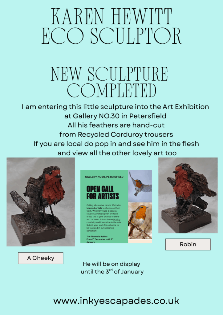 EVENTS – December – new Robin Sculpture on display at The Gallery NO.30 Petersfield