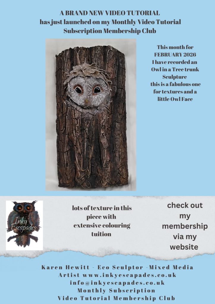 my latest 38th Video Tutorial was released for February Here he is my Owl in a Tree Trunk