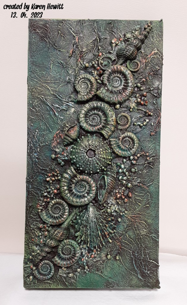 You will be shown how to take a board approximately 12″ x 6″ and create a beautiful textured picture resembling a drift of Seashells